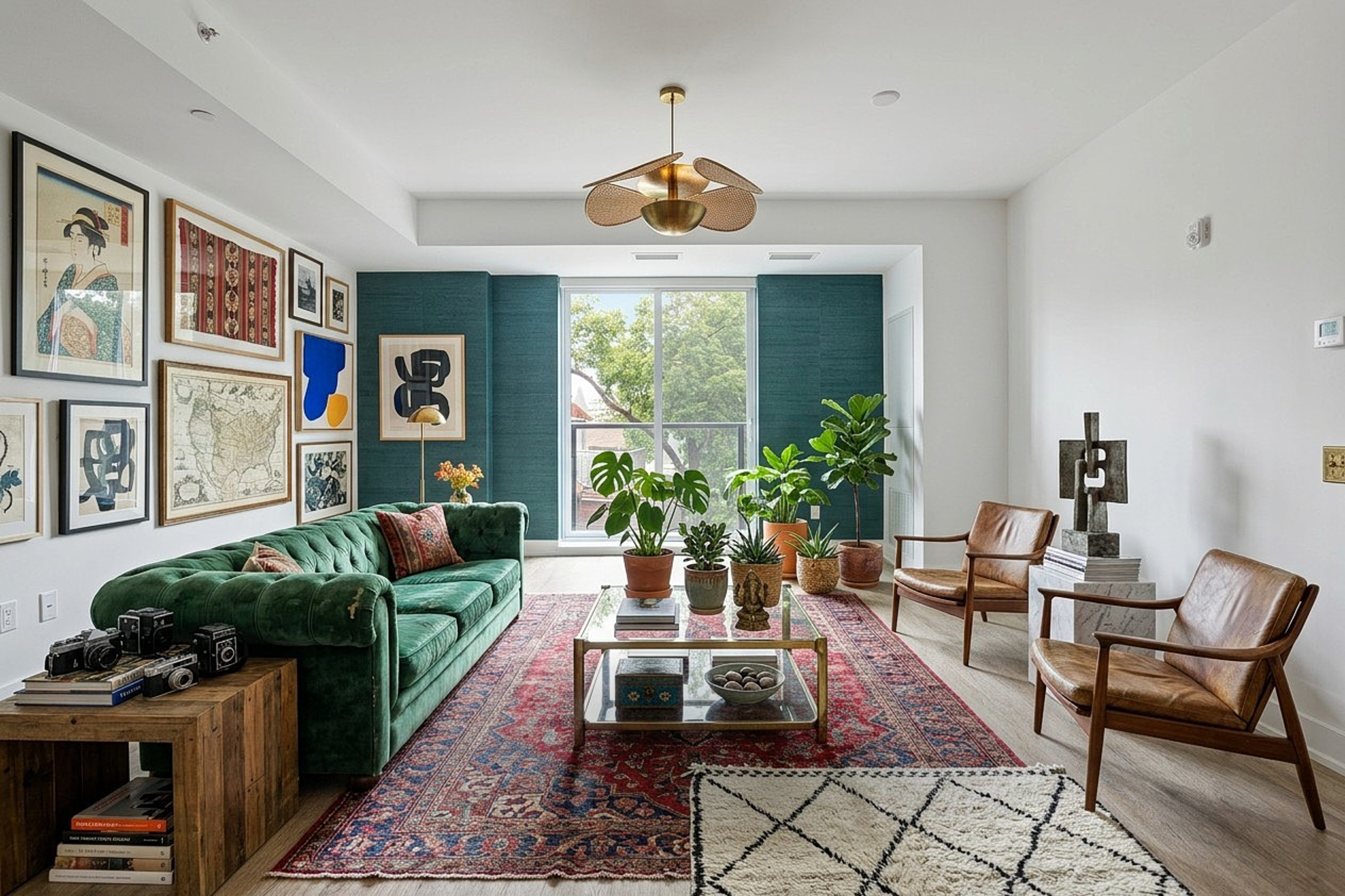 Eclectic design mixes eras, origins, and aesthetics with confident intention — vintage finds alongside modern pieces, global textiles with local art, bold patterns layered without rules. It is personal, curated, and full of character, creating spaces that tell a story no catalog could replicate.