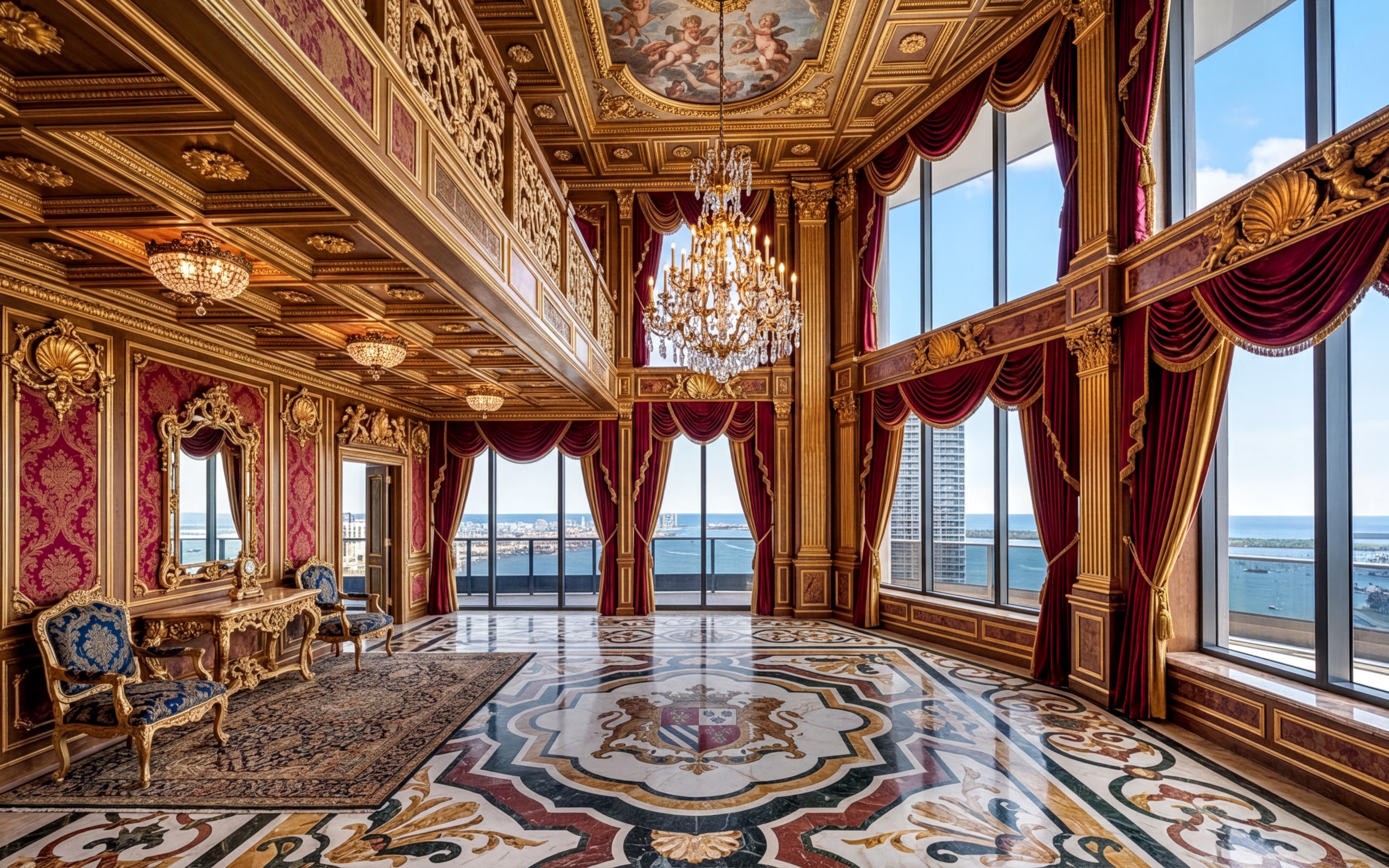 Select the baroque theme and customize furniture, colors, and accessories.
